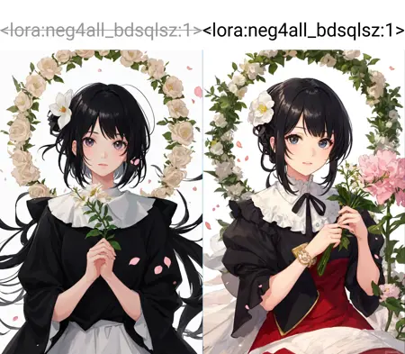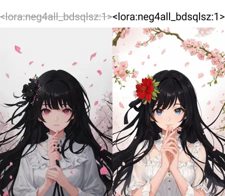 긍정적: 1girl,black hair,hair_flower,petals,lora:neg4all_bdsqlsz_V3.5:1
