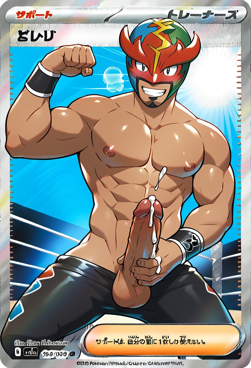POKEMON_MaskedRoyal, 손목 밴드, 루차도르 마스크, 수염, 상체 노출, 갈색 피부, 검은 동공