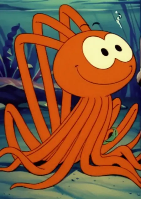오키를 원하신다면: '카툰 문어, 마젠타색, 큰 머리, 큰 눈,