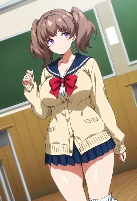 Mihiro: 1girl, mihiro, purple eyes, twintails, brown hair, breasts, large breasts