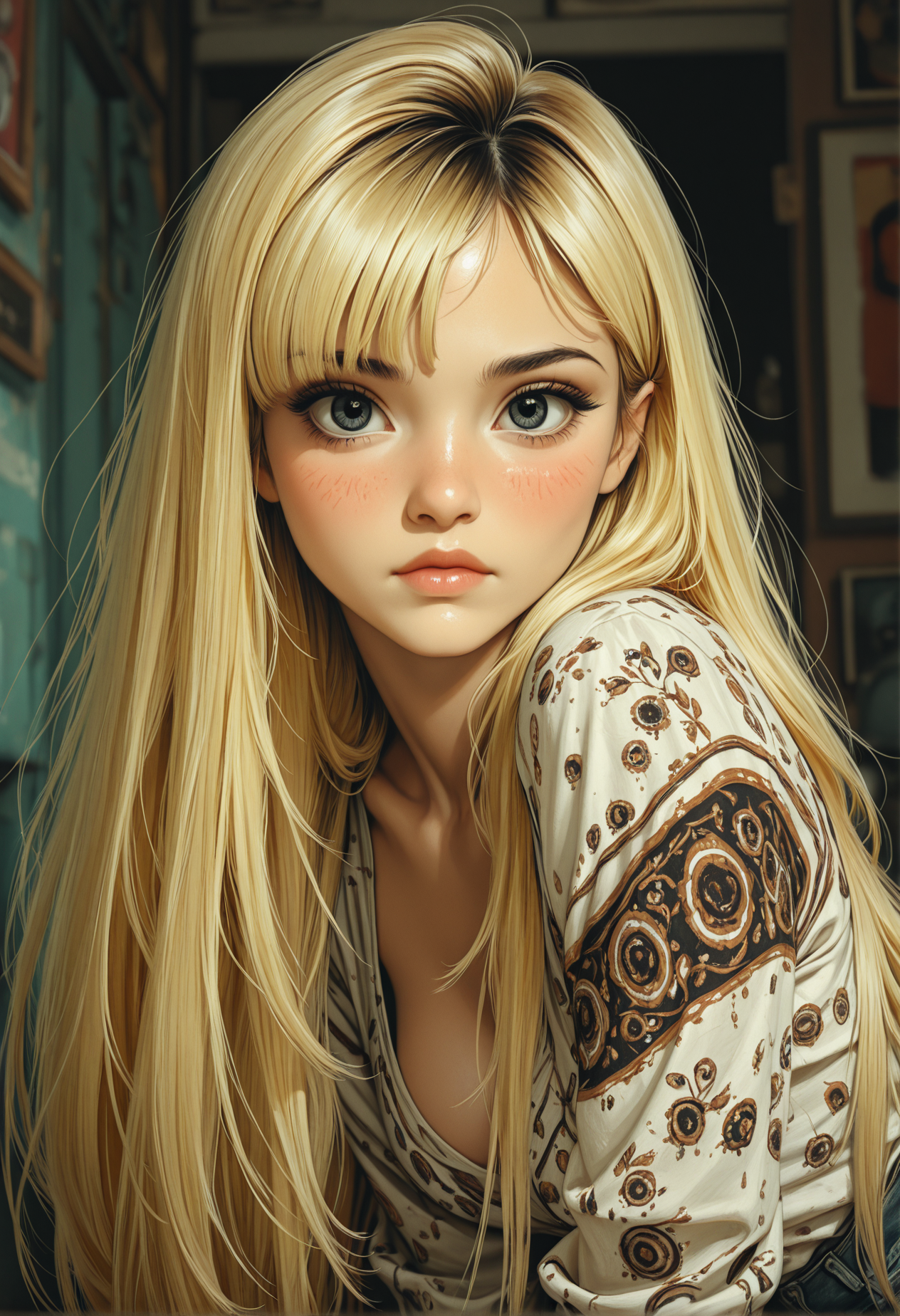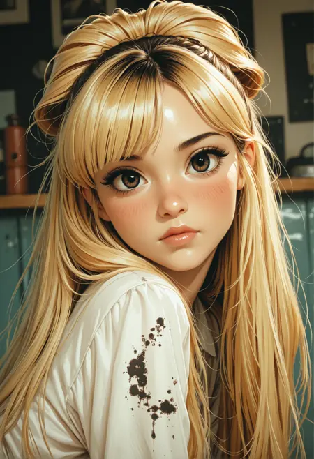 _ハイパーリアリスティックで写真のような肌の質感、クリーンなエアブラシ仕上げ、シネマティックな照明を用いてセミリアリスティックなルックを維持しています。デジタル編集的な美学とアニメ風のエレガンスが融合しています。服は体にフィットし、繊維のリアルなツヤを帯びています~_