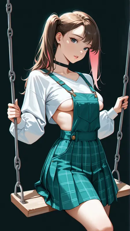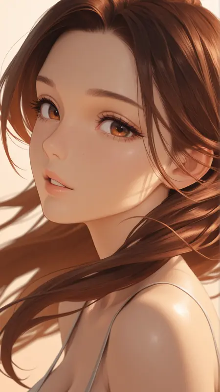 keeping a semirealistic look by spawning with hyperrealistic, near-photographic skin textures, a clean airbrush finish, and cinematic lighting. The look blends digital editorial aesthetics with anime-inspired elegance. Her clothing is form-flattering with textile-realistic sheen –