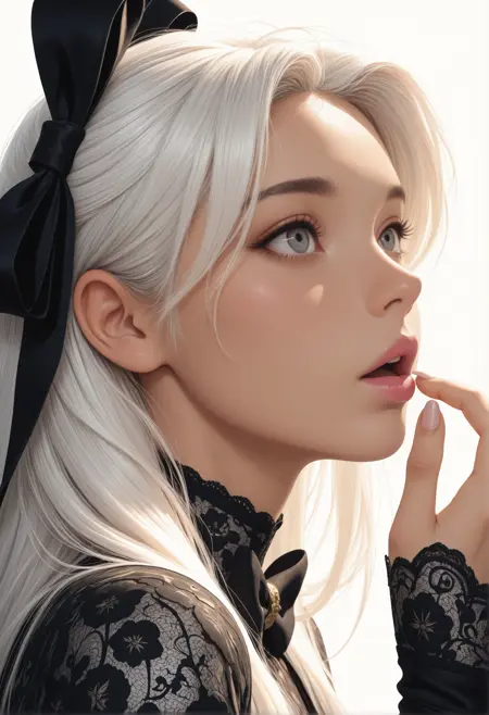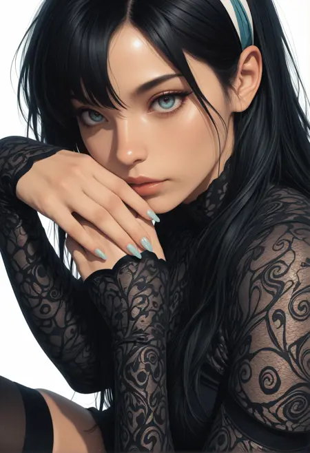 通过超写实、近似照片级的皮肤纹理、干净的喷枪效果和电影级灯光,维持半写实风格。视觉融合了数字编辑美学与动漫风格的优雅。服装贴合身形,具有织物的真实光泽——
