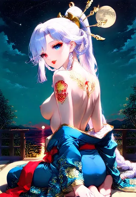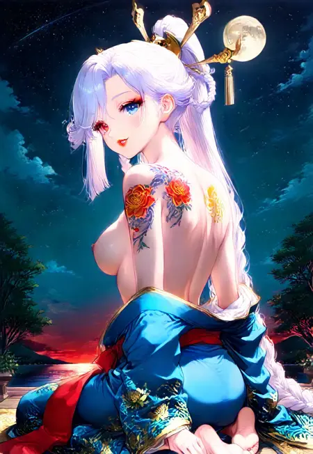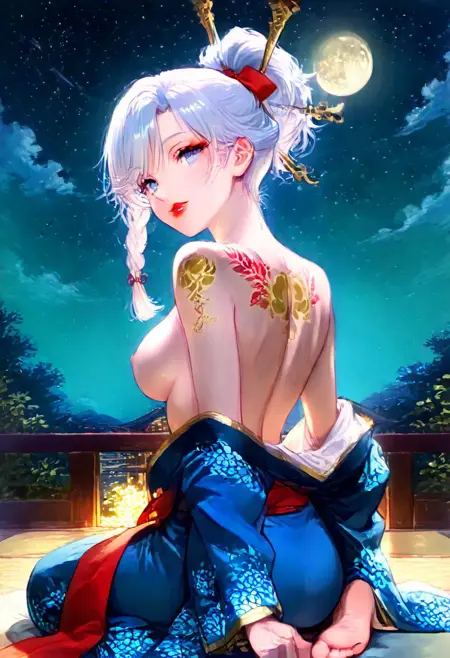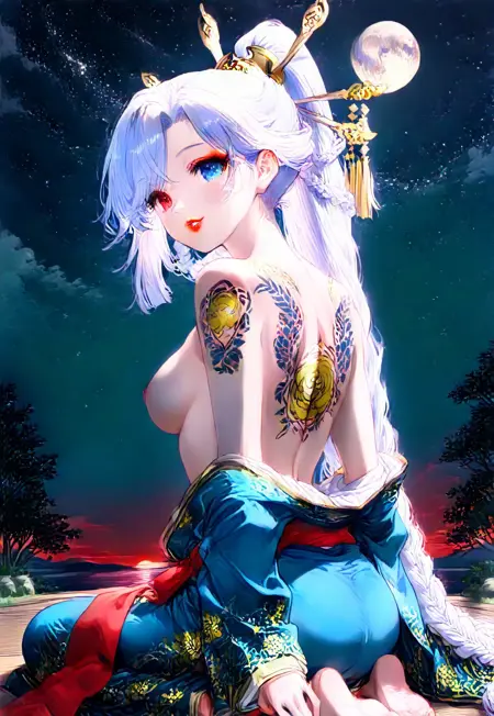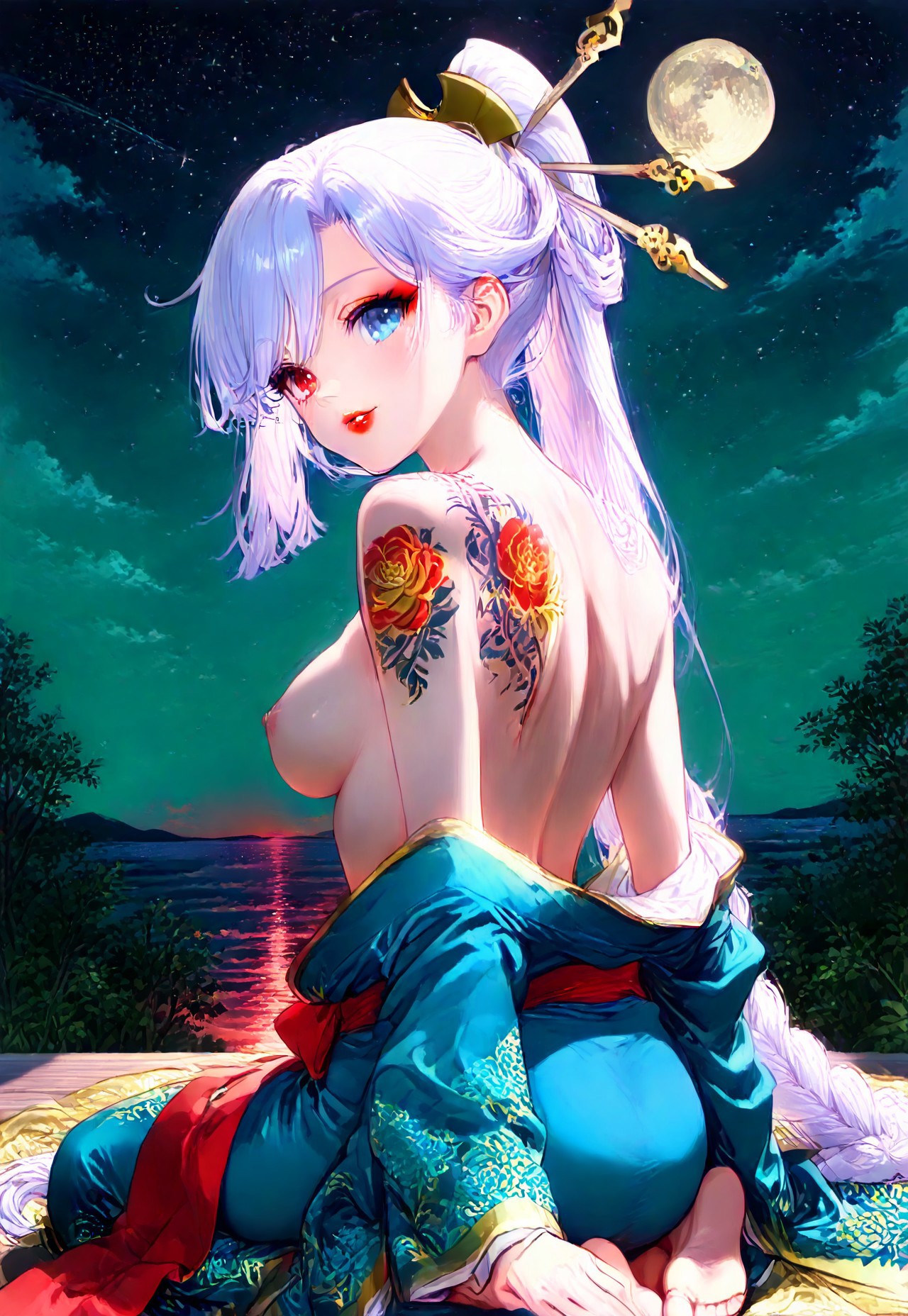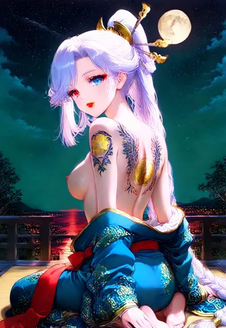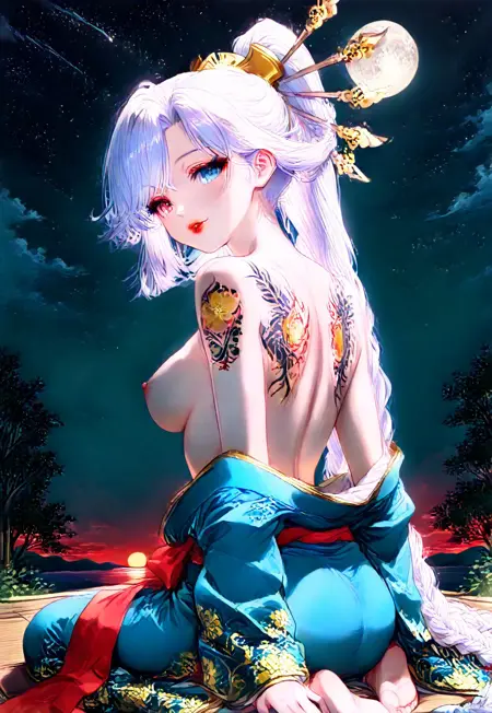 시청자에게 뒤돌아보는 포즈에 적합합니다. 선명한 이미지입니다. 여러 눈색깔에 대해 학습되었습니다. 손과 얼굴 특징에 중점을 두었습니다.