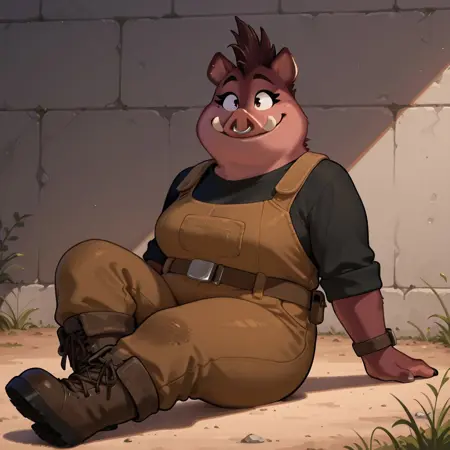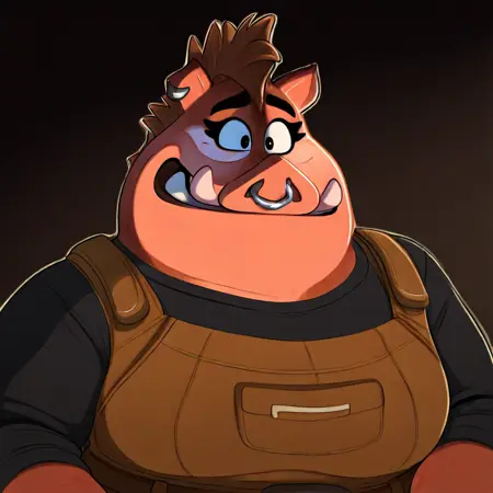 PT(character), warthog, anthro, female, chubby, tusks, nose ring, Mohawk, buff,