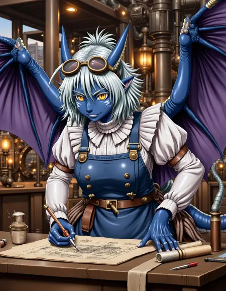 This version of Lora is for Flux Dev. To generate the character, simply mention her name, but it's better to also specify that she has wings, a tail, and any type of clothing. This will result in a full-body image. The word "dress" will create her default outfit.