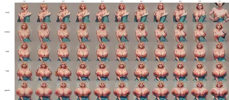 flat chested(无训练数据,但仍有效)small breastsmedium breastslarge breastshuge breastsgigantic breasts