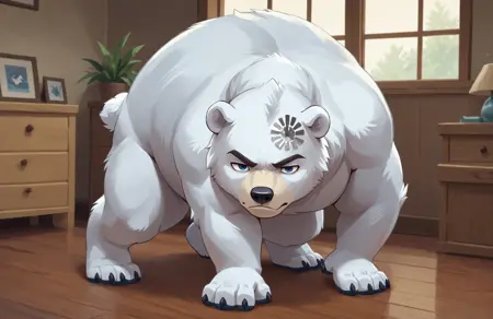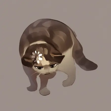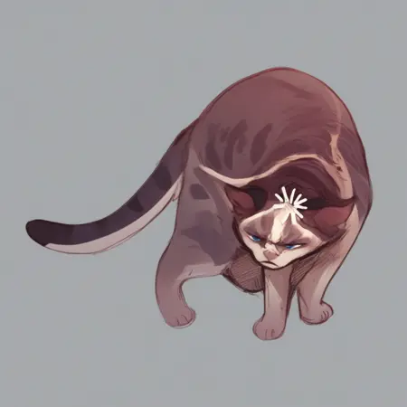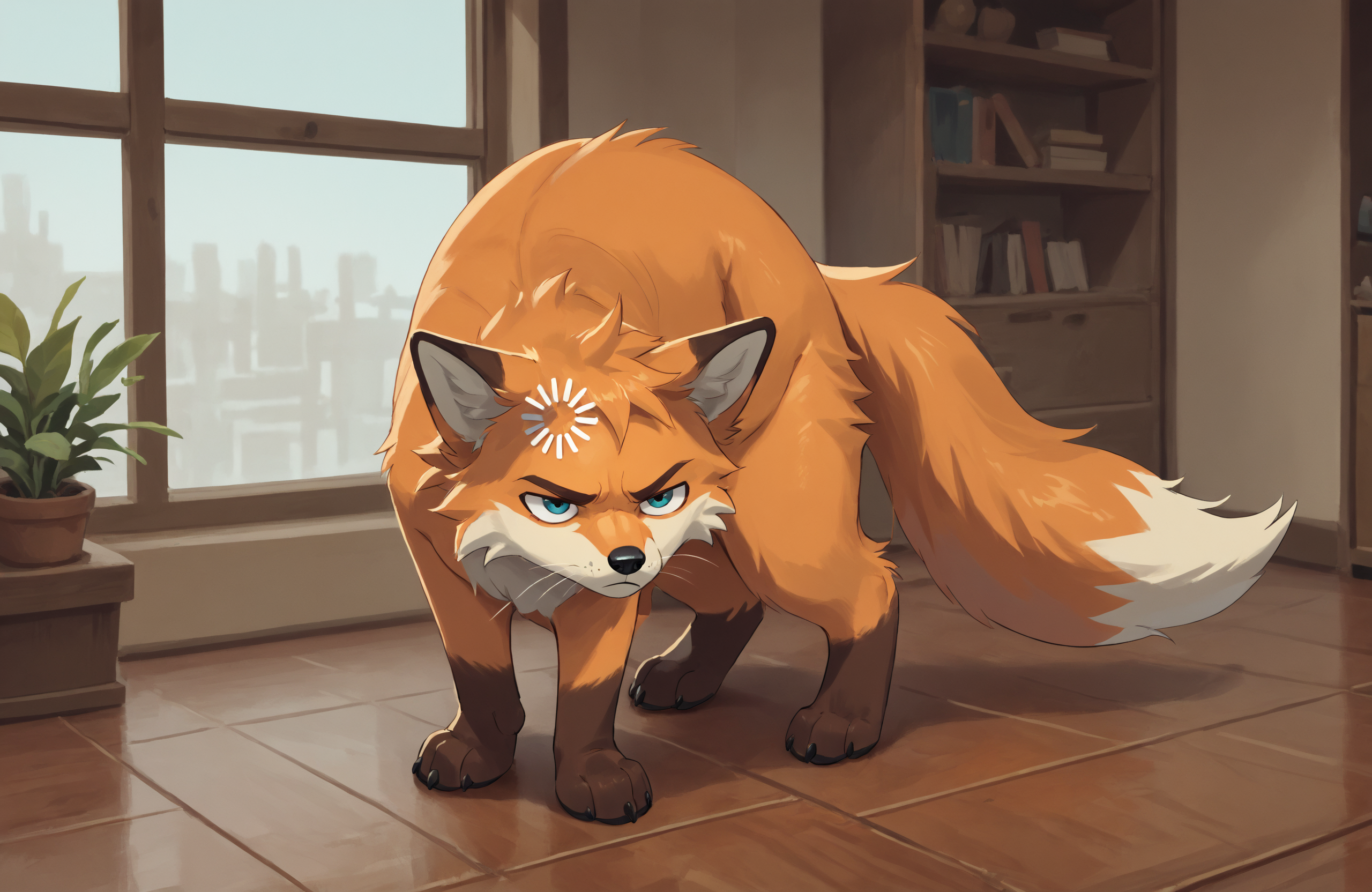 mikus-concept, arched back, narrowed eyes, loading icon on forehead