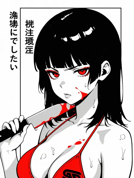 이 모델에 대해 많은 테스트를 진행했습니다. 이는 저의 두 번째 스타일 LoRA이며, 기본적으로 원하는 대로 나왔습니다(위에서 언급한 문제를 제외하고). 이제 시작해보겠습니다. 에포크는 11입니다. Hassaku 체크포인트와 매우 잘 작동합니다. Clip Skip 2. LoRA 가중치 1-1.4. 특히 이 첫 번째 버전에서는 결과에 따라 조정해야 합니다. 특히 캐릭터 LoRA를 사용하는 경우 더욱 그렇습니다. 이상적인 결과는 일본어 글자, 흰색 사각형, 제한된 색상 팔레트, 회색 피부 캐릭터입니다. 원치 않는 와이프 컵이 생성되면 LoRA 가중치를 낮추고, 사각형이나 일본어 글자가 보이지 않으면 LoRA 가중치를 높이세요. 캐릭터의 피부가 회색이 아니라면 캐릭터 LoRA의 가중치를 줄여보세요. 캐릭터 LoRA를 사용할 때 색상이 비정상적으로 선명하게 나온다면 캐릭터 LoRA의 가중치를 낮추세요.