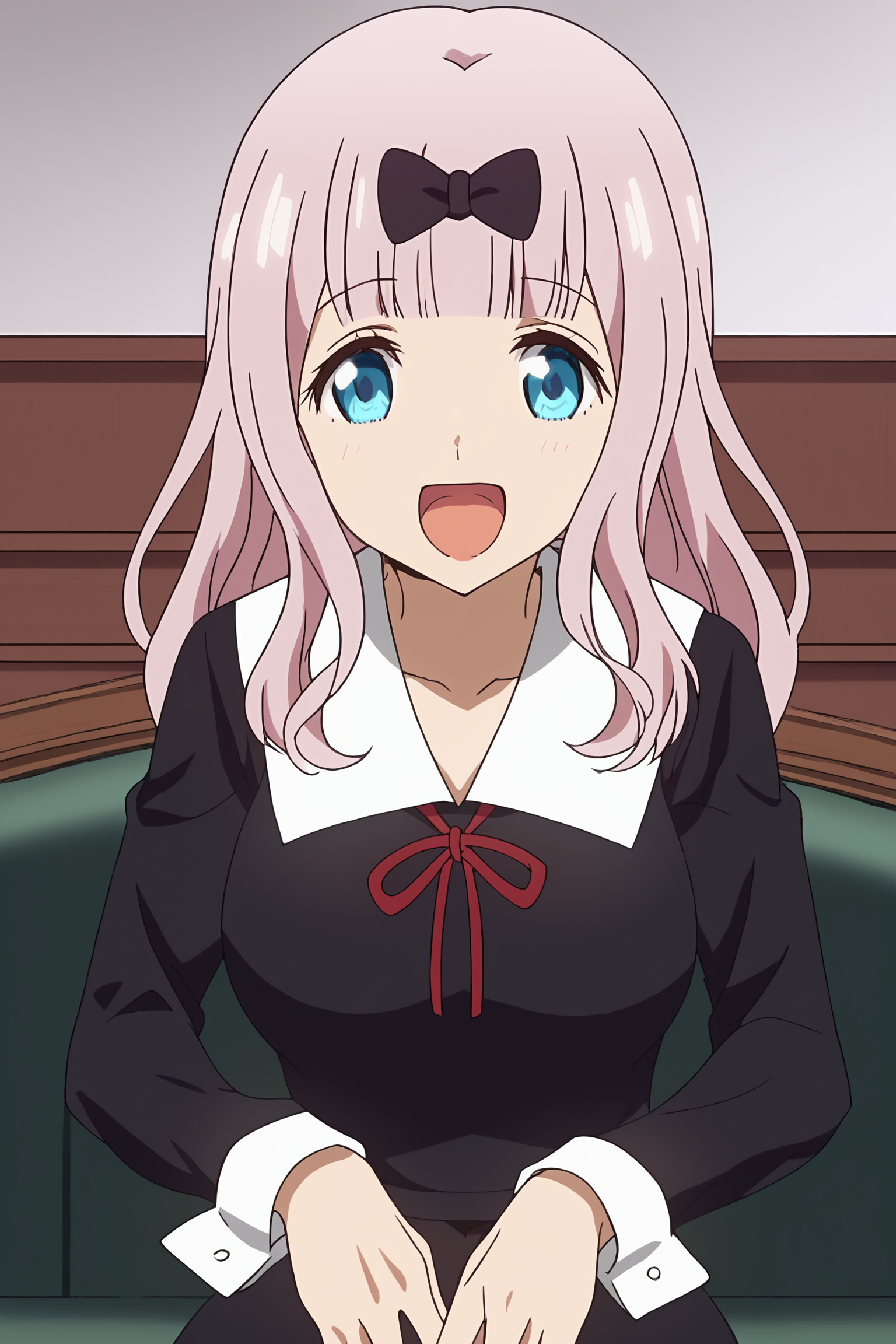关键术语: 1girl, 藤原千花, 粉色头发, 发结, 长发, 齐刘海, 乳房