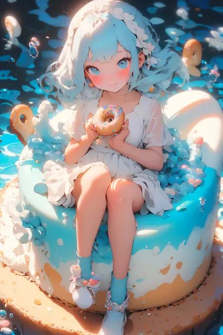 二次元スタイルのモデルで、キャンディ、クリーム、キャラクターの融合とフリュイドアートを組み合わせたもの。シーンは他のモデルと連携させる必要があります。(解像度を下げてからハイディテール修復を推奨)