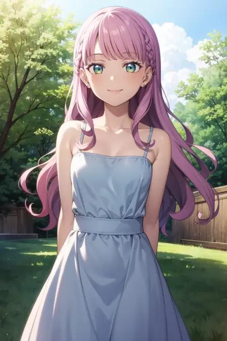 light purple hair를 purple hair 또는 pink hair로 변경할 수 있고, long hair를 very long hair로 바꿀 수 있습니다.