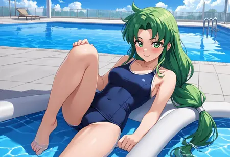TAGS : Yae,parted bangs,very long hair,japanese clothes,green hair,low-tied long hair,