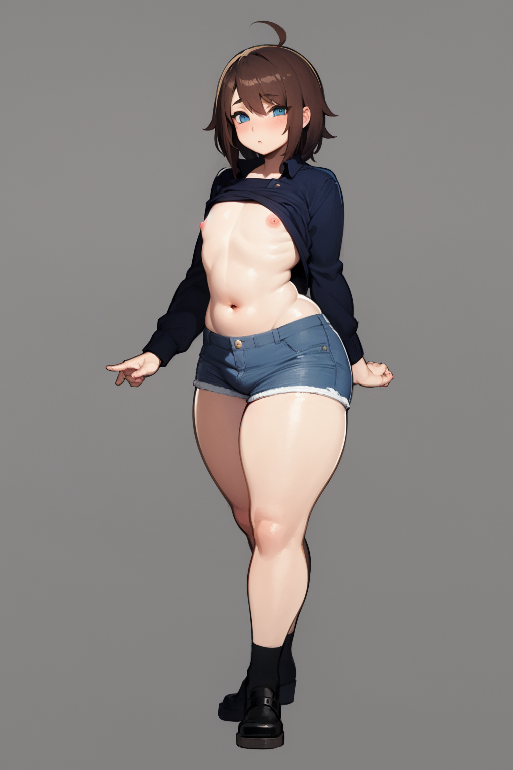 기타 프롬프트: 곡선형, 넓은 골반, 음경, 고환, 벌거벗음, 발기, 평평한 가슴, 작은 유방, 유두, otoko no ko, 배꼽, 두꺼운 허벅지, 허벅지 양말