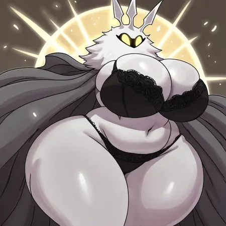 代替プロンプト:radiance_(hollow knight)、白い毛並み、空っぽの目、蛾、節足動物、首のたんぼう、白い体、黄色い目、発光する目、