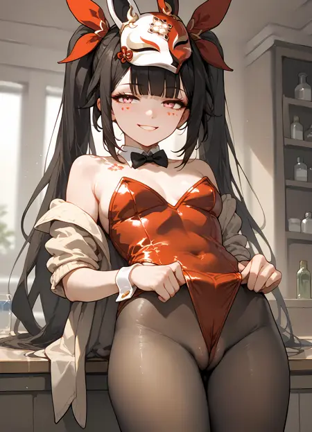 它适用于所有涉及紧身衣/高衩设计的服装(例如兔女郎装、高衩比基尼、高衩连体泳衣)。它也可以用于内裤或类似服饰,但在这些情况下表现可能不佳。