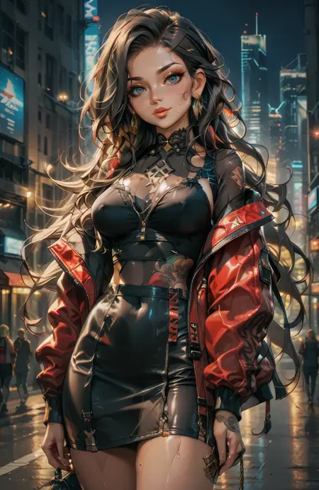 이 LoRA는 의상 세부 사항을 강화하여 미래적이고 디스토피아적인 스타일이 결합된 세련된 테크웨어 감각을 부여합니다. 또한 얼굴에 약간의 '카와이' 매력을 더해 더 귀엽고 표현력 풍부하게 만듭니다. 최적의 결과를 얻으려면 얼굴 보정 기능과 신중하게 구성된 프롬프트와 함께 사용하세요.