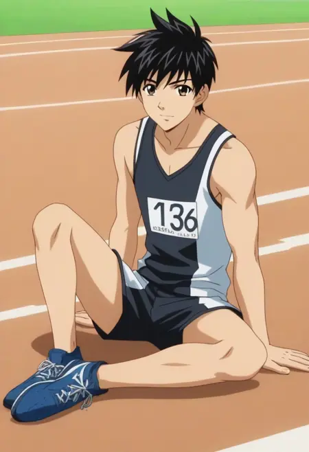 Yamato Akitsuki, black hair, brown eyes, track uniform