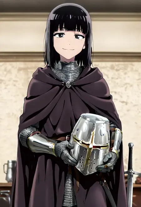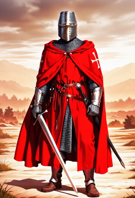 Included in this Lora are other features that might be of interest: chainmail (this typically generates a chainmail shirt with surcoat), cape, gauntlets, shield.