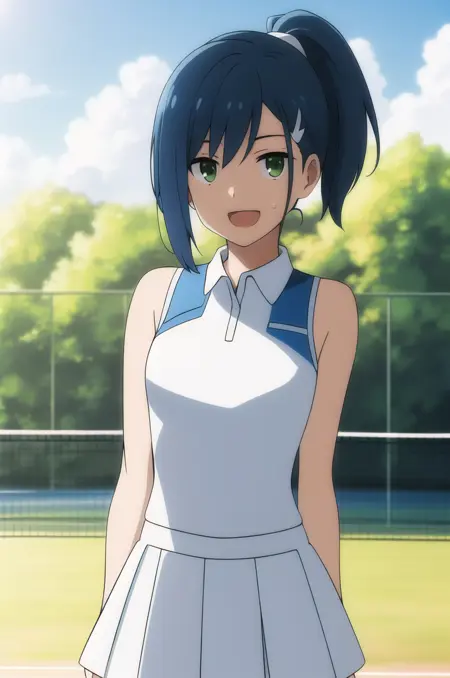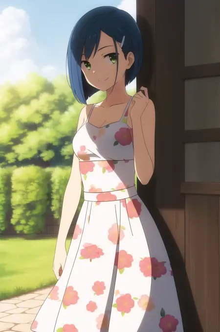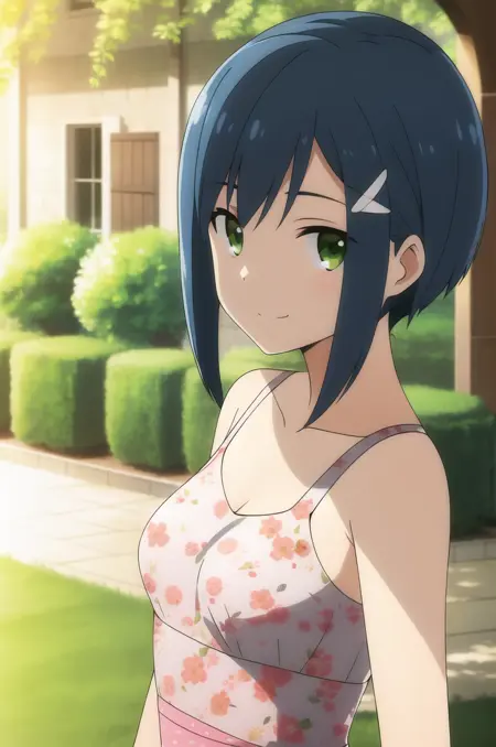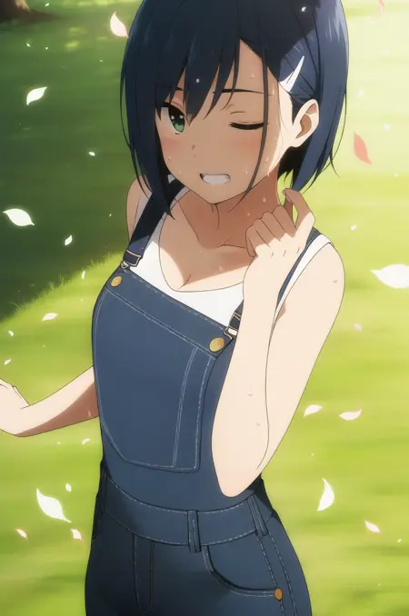 <lora:FranxxIchigo-v2-03:0.65>, ChopioFranxxIchigo, short hair, blue hair, green eyes, hair ornament, hair clip, (blush:1.3), looking at viewer, 1girl, solo,