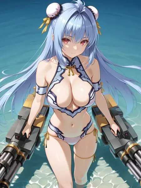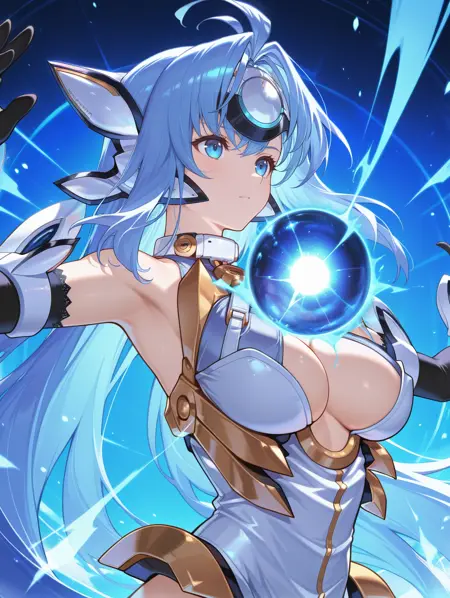 标签(武器5 - 不理想):蓝色能量球,胸前能量球,深V领口,胸部暴露