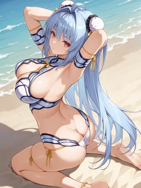 标签(服装 - 1):官方替代服装,双发髻罩,黄色丝带,黄色脚踝带,黄色大腿绑带,白色细带高跟鞋,白色侧系泳装,白色臂环