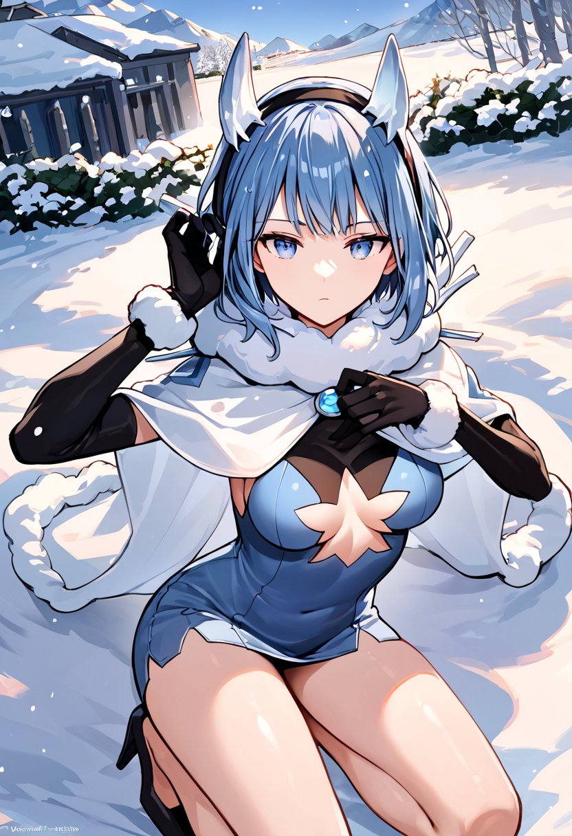 ベースプロンプト(デフォルトの服): def_nifl, 青い髪, 短い髪, 青い目, 前髪, ヘアバンド