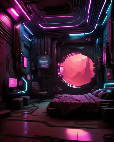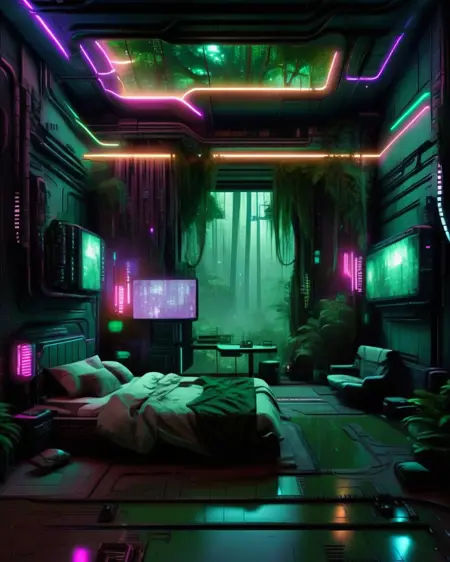 用于训练 Cyber Background 模型的数据集经过精心挑选,包含大量赛博朋克和霓虹风格的图像。这些图像展现了赛博朋克美学的标志性元素,例如高耸的未来主义摩天大楼、霓虹灯照亮的街道、全息广告牌以及繁华的城市景观。通过在此数据集上进行训练,该模型已深入理解定义赛博朋克与霓虹环境的视觉要素。