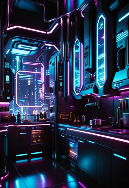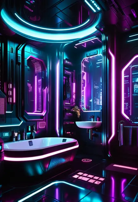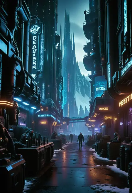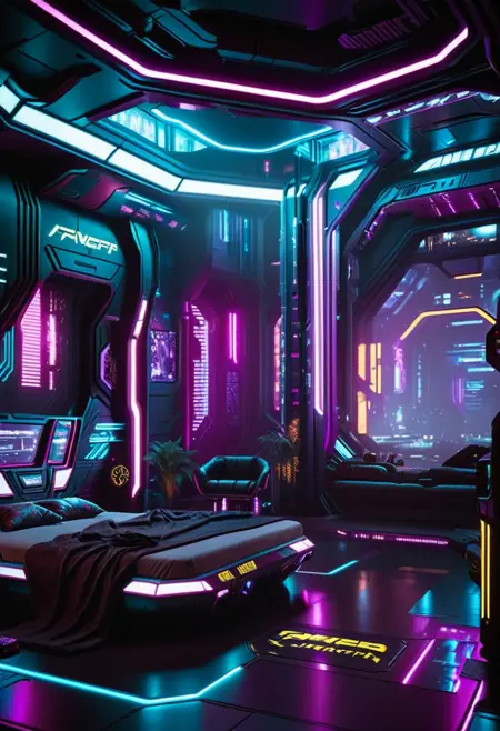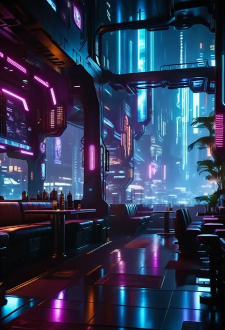 用于训练 Cyber Background 模型的数据集经过精心挑选,包含大量赛博朋克和霓虹风格的图像。这些图像展现了赛博朋克美学的标志性元素,例如高耸的未来主义摩天大楼、霓虹灯照亮的街道、全息广告牌以及繁华的城市景观。通过在此数据集上进行训练,该模型已深入理解定义赛博朋克与霓虹环境的视觉要素。