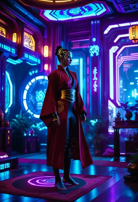 Cyber Background 模型专为生成受赛博朋克风格和霓虹灯光环境启发的引人入胜且沉浸式的背景而设计。该模型在包含赛博朋克城市景观和霓虹场景图像的数据集上进行了训练,经过 20 个轮次和 1760 步的训练,已掌握这些未来主义与绚丽场景的复杂性与视觉特征。