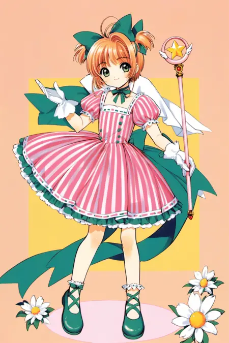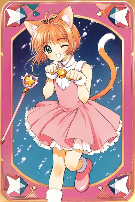 이 모델은 화풍 모방 효과가 뛰어납니다. 훈련에 사용된 모든 이미지는 CLAMP의 《마카 소녀 사쿠라》 컬렉션에서 가져왔으며, TV 애니메이션 버전의 이미지 자료는 포함되지 않아 순수한 CLAMP 스타일 LORA를 얻을 수 있습니다.