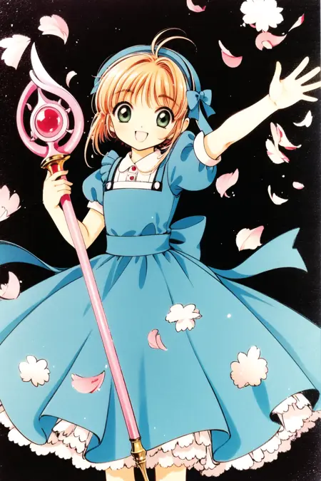 该模型具有极佳的画风模仿效果。所有训练图片均来自CLAMP的《魔卡少女樱》原作,未混入TV版动画素材,从而获得了纯净的CLAMP风格LORA。
