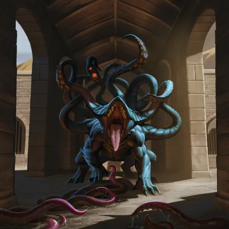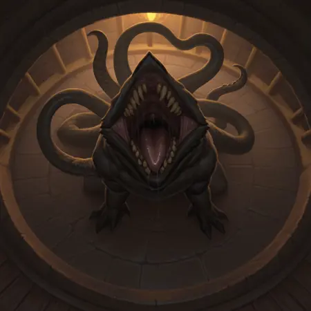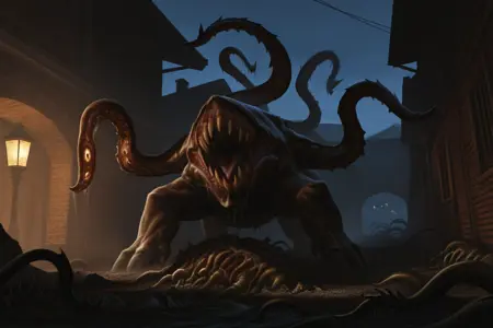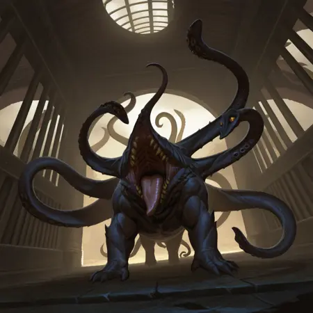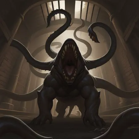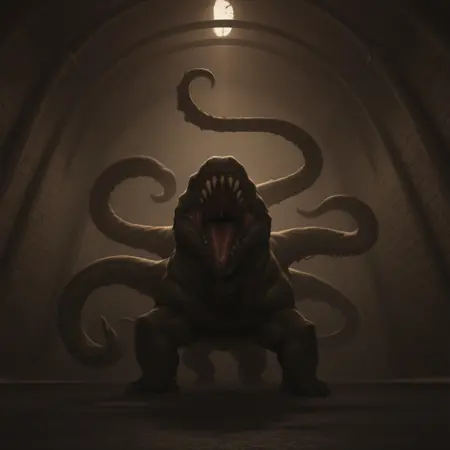 戦闘戦略:オティーグは戦略的な戦闘者です。触手で獲物を捕らえて動けなくした後、強力な噛みつきで攻撃します。また、捕らえた獲物を他の獲物や堅固な表面にぶつけて、追加のダメージを与えることができます。