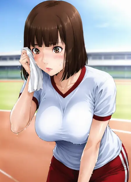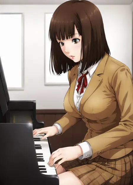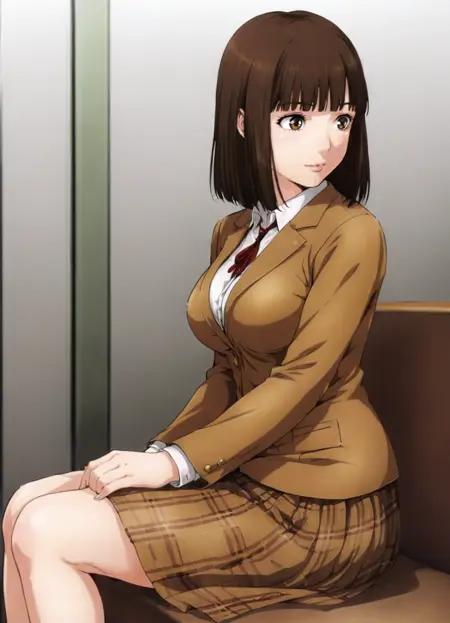 - Chiyo Kurihara,brown hair, brown eyes,pink lips, / school uniform, jacket,white shirt, blazer,