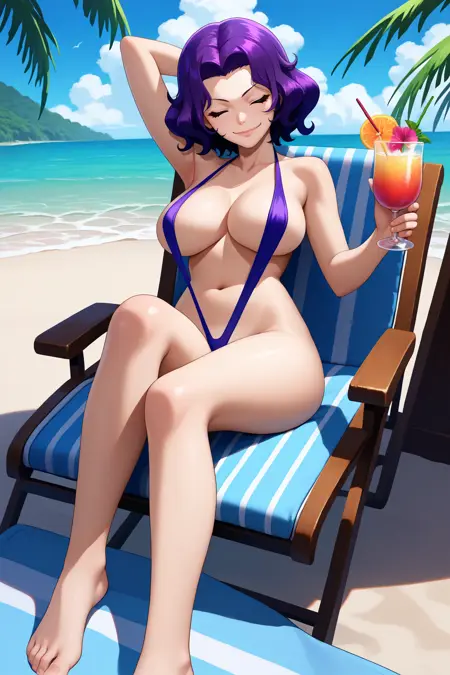 『グランブルー』の浜岡あずさ。Pony Diffusion V6 XL で学習済み。強度0.8-1.0でテスト済み。