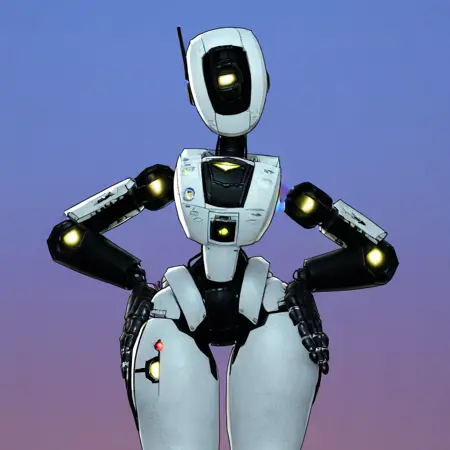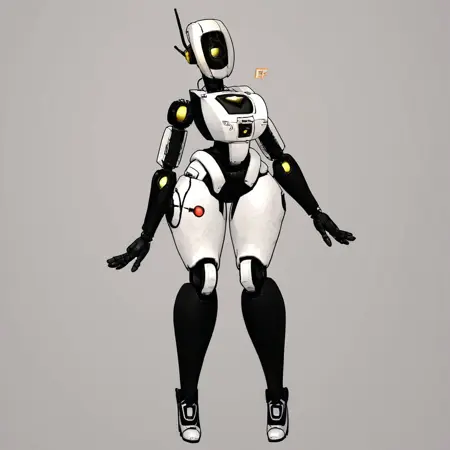 Glados_(Ruffleswinner22), robot, female, one yellow eye, robot heels, big thighs, large chest,