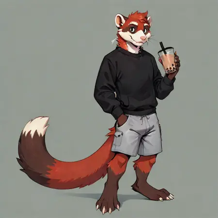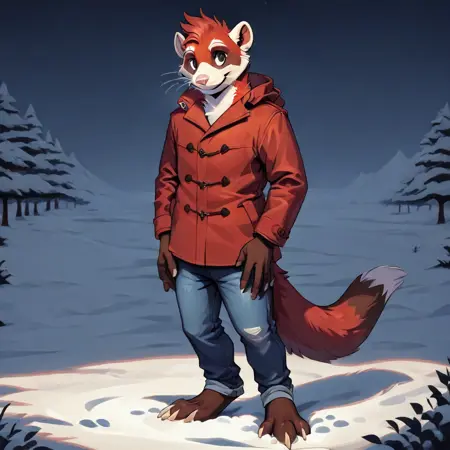 red fur, black ears, black paws, blue eyes를 추가하는 것을 권장합니다. 원하는 모습과 다르게 보인다면요.