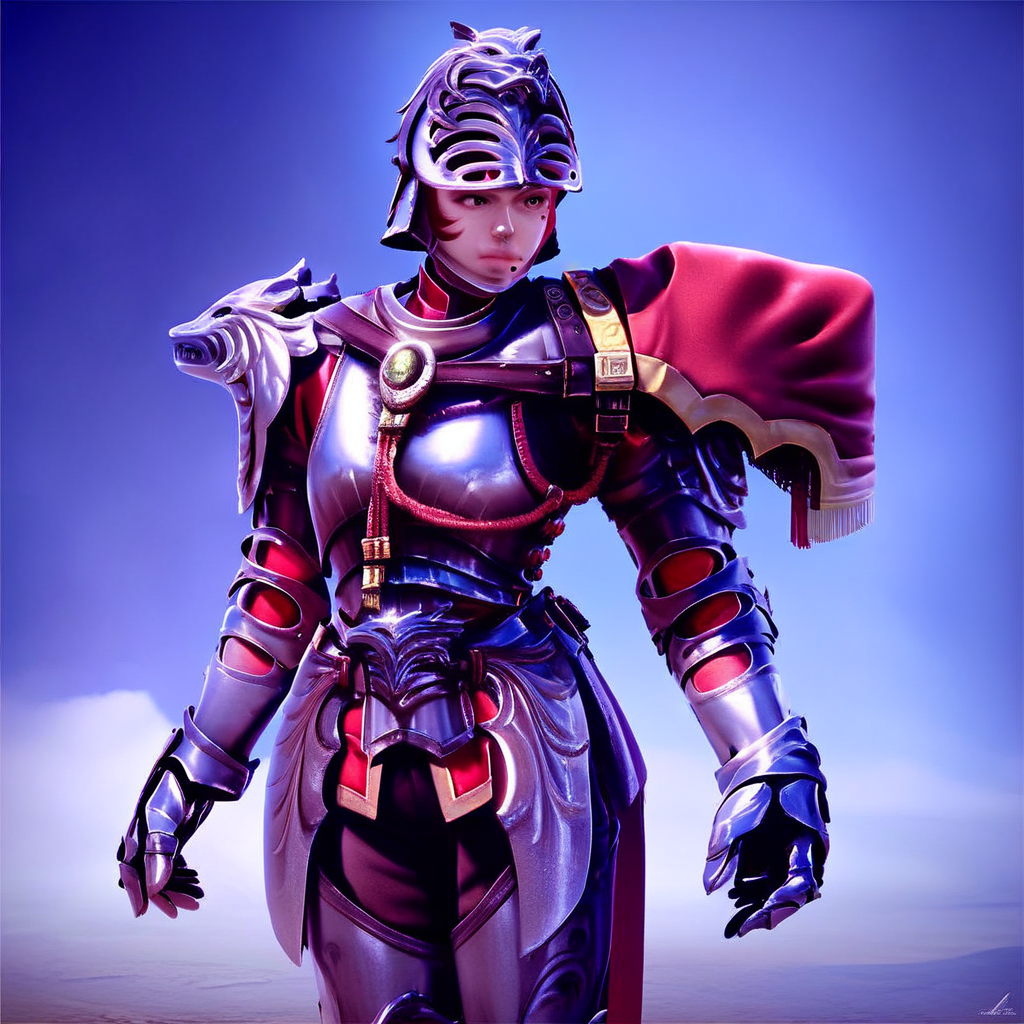 helmet, breastplate, armor, gauntlets, asymmetrical shoulder armor, greaves,