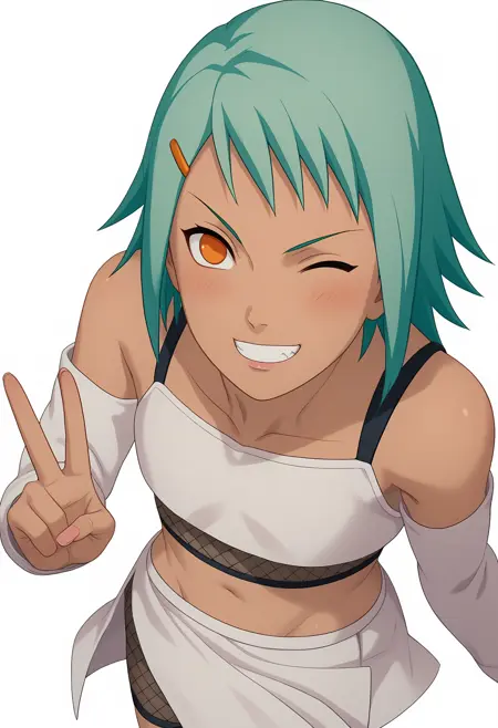 짧은 머리, 주황색 눈, 초록색 머리, 검은 피부, 헤어클립,