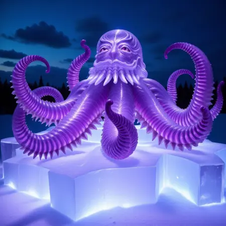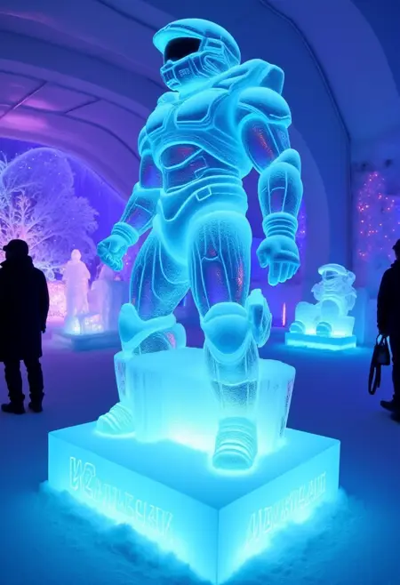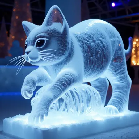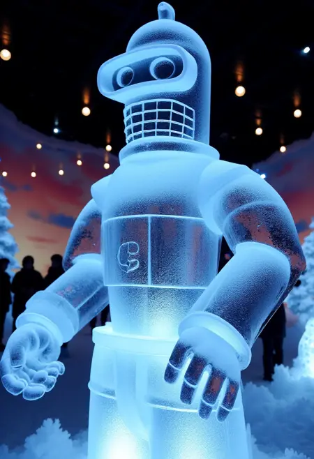 Flux本身已具备冰雕的概念,表现也尚可,但本LoRA旨在进一步提升效果——让冰雕更具冰感、更精细、整体更生动。
