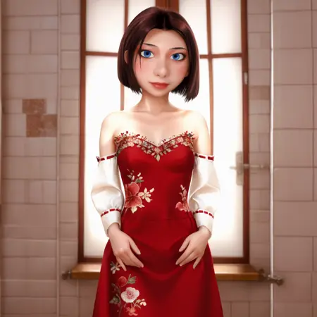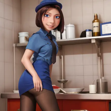 触发词:Colette,蓝眼睛,棕发,1girl,短发,厨师,纽扣,长裙,长袖,牛仔镜头
