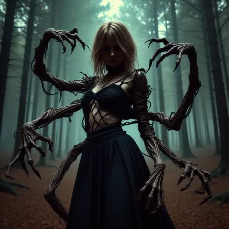 我是黑暗森林的守护者,在这里,阳光罕至,阴影主宰一切。我的肢体扭曲弯曲,覆满古老树木的树皮,我的手指如参天橡树的根须般伸展,深入森林的灵魂深处。我的双眼散发着超凡的光芒,穿透时间与空间的帷幕,洞悉世间隐藏的真相。