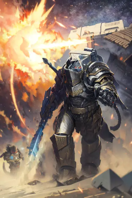全身装甲 + 机械植入物 + 披风 + 弹药带