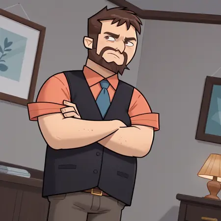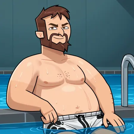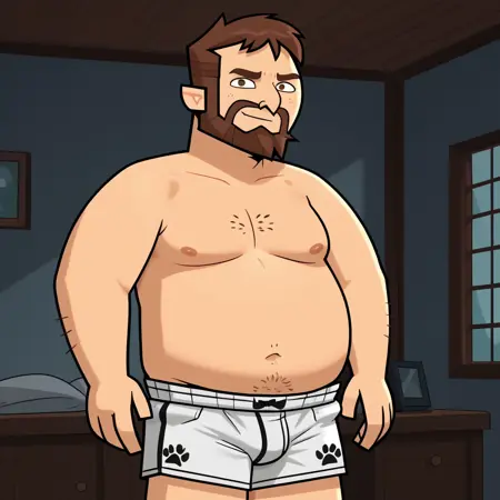 dctedg, 1boy, beard, mature male, overweight, solo,