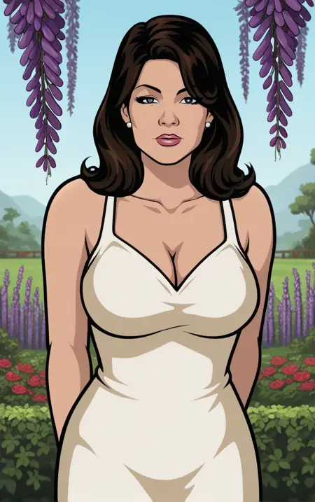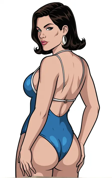 PONYXL_STYLE_Archer_ownwaifu, {black hair | brown hair | blonde hair}, 1girl, jewelry, large breasts, cleavage, lips, lipstick, makeup, parody, { mature female | dark-skinned female}, {nude, nipples, navel | swimsuit | lingerie | shirt | dress},
