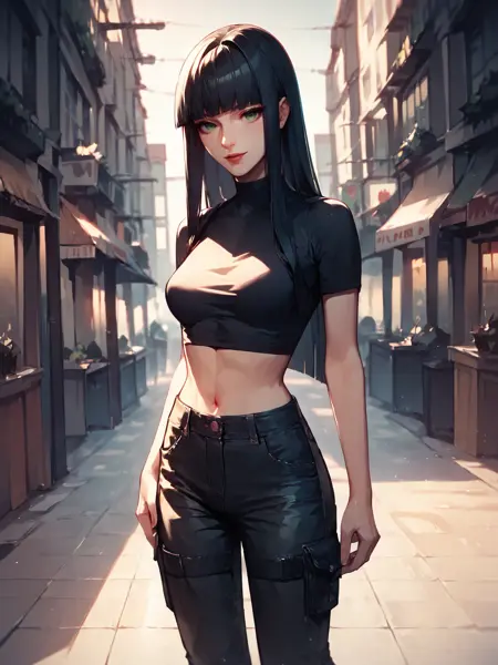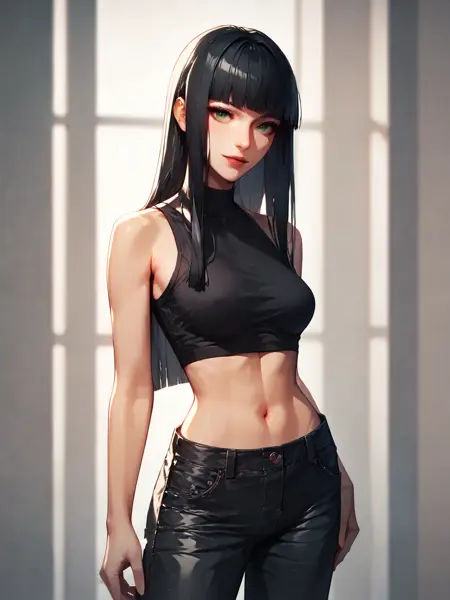 タグ: 最良の結果を得るには、Jane または Jesse のタグ、ダークグリーンの目、黒のカーゴパンツ、ノースリーブの短めのシャツ、ブーツを使用してください。Jane には「姫カット」、Jesse には「短い黒髪」と追加してバージョンを指定してください。