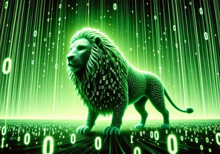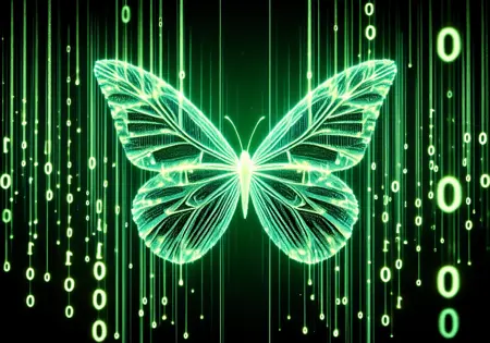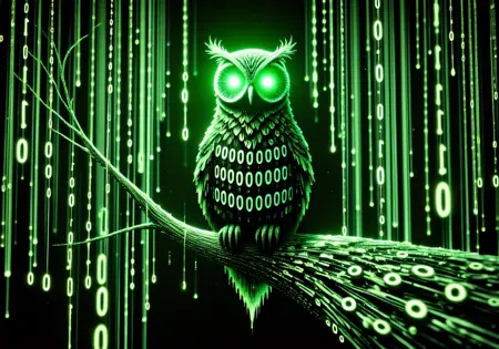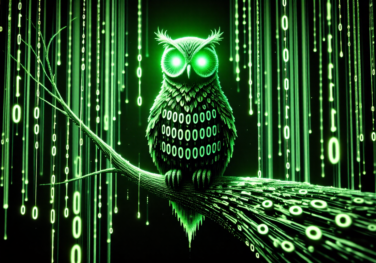 완전히 빛나는 녹색 이진 코드(1과 0)의 수직 흐름으로 이루어진 초현실적 세계. 초점은 근접하여, 빛나는 이진 코드의 복잡한 패턴이 [당신의 주제]를 형성하는 것을 보여줍니다. 분위기는 미래적이고 몰입감 있으며, 네온 녹색 에너지로 뛰고 있습니다.