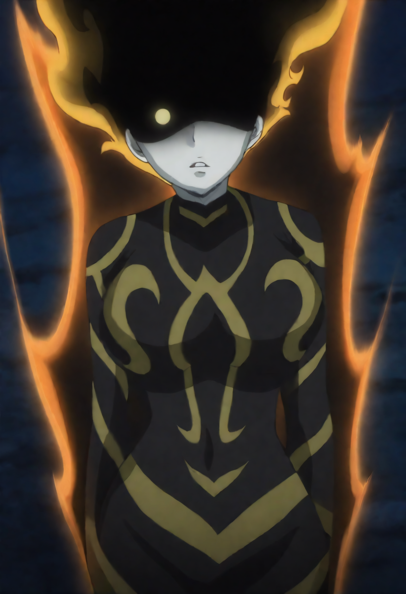 • Appearance tags: glowing, aura, floating hair, glowing hair, long hair, one eye, no pupils, glowing eye, neon trim, colored skin, black skin