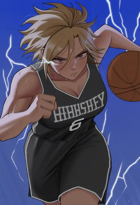 1. Bodysuit: multicolored bodysuit, blue bodysuit, black bodysuit, yellow trim, skin tight, single pauldron, yellow pauldron, single gauntlet, yellow gauntlet, blue knee boots