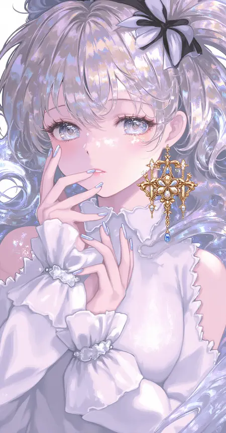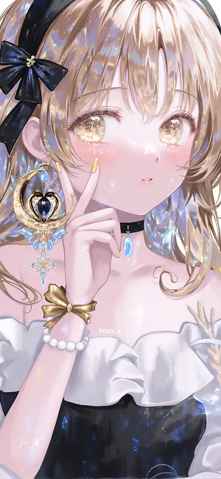 一幅奇幻主题的数字插画。整体风格细致,着重表现光影效果以及角色眼睛和配饰的反光质感。